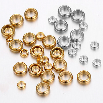 Cuentas espaciadoras de rosquillas con agujero grande de 2mm-10mm, cuentas espaciadoras de rueda de acero inoxidable de oro Pvd de 18K para pulsera de cuerda de cuero, collar, joyería