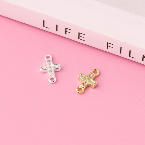Thời Trang Mạ Vàng 925 Sterling Silver CZ Zircon Chữ Thập Quyến Rũ Cho Vòng Đeo Tay Trang Sức Làm Phụ Kiện